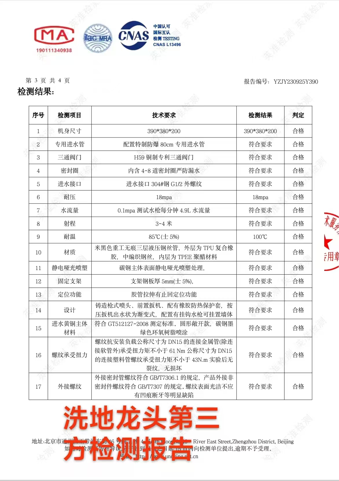 洗地龙头第三方检测报告